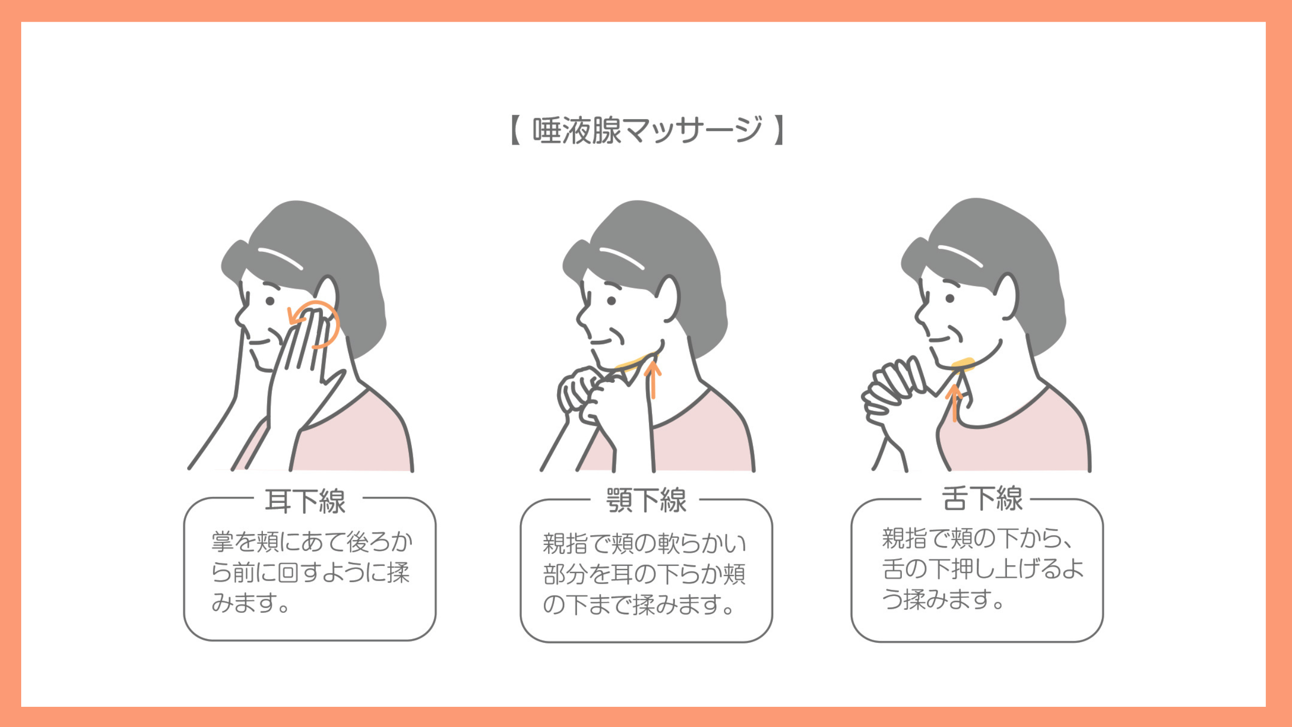 口周りの筋肉を鍛える体操や唾液を促すマッサージなど、食べたり話したりする口腔の機能を回復・維持させるためのケア