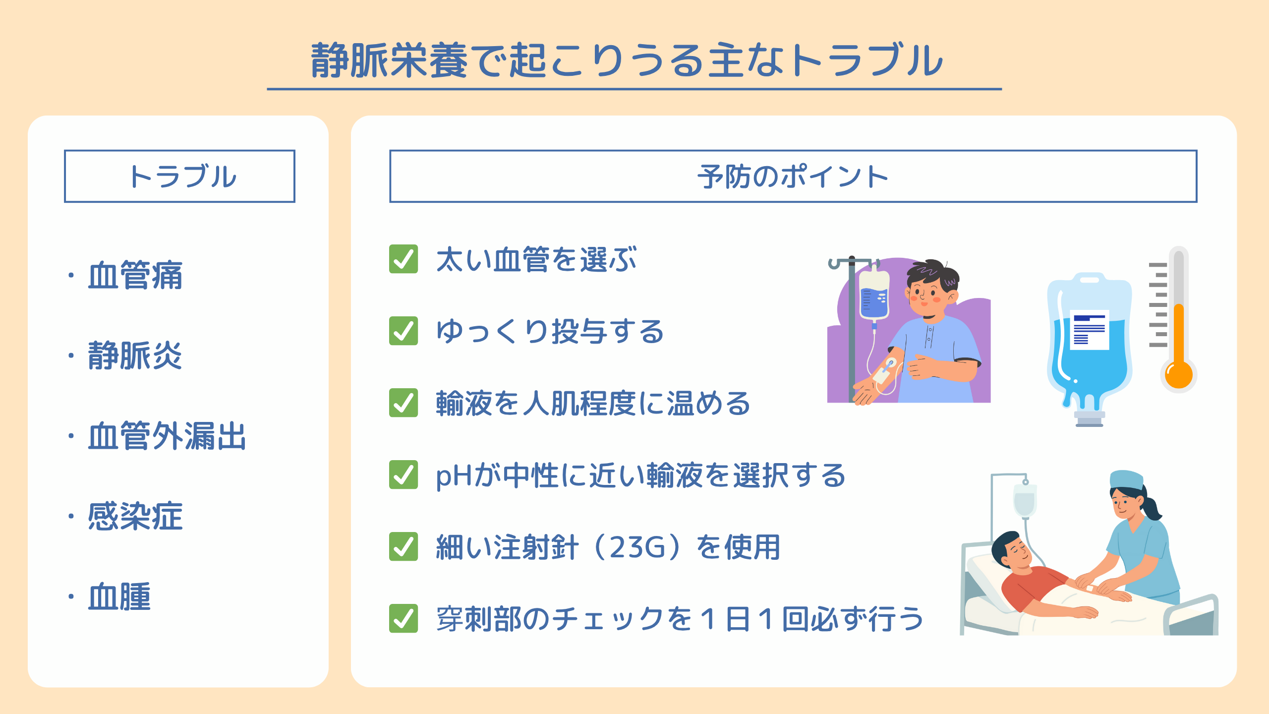 また、カテーテル留置中は感染症のリスクが高まります。