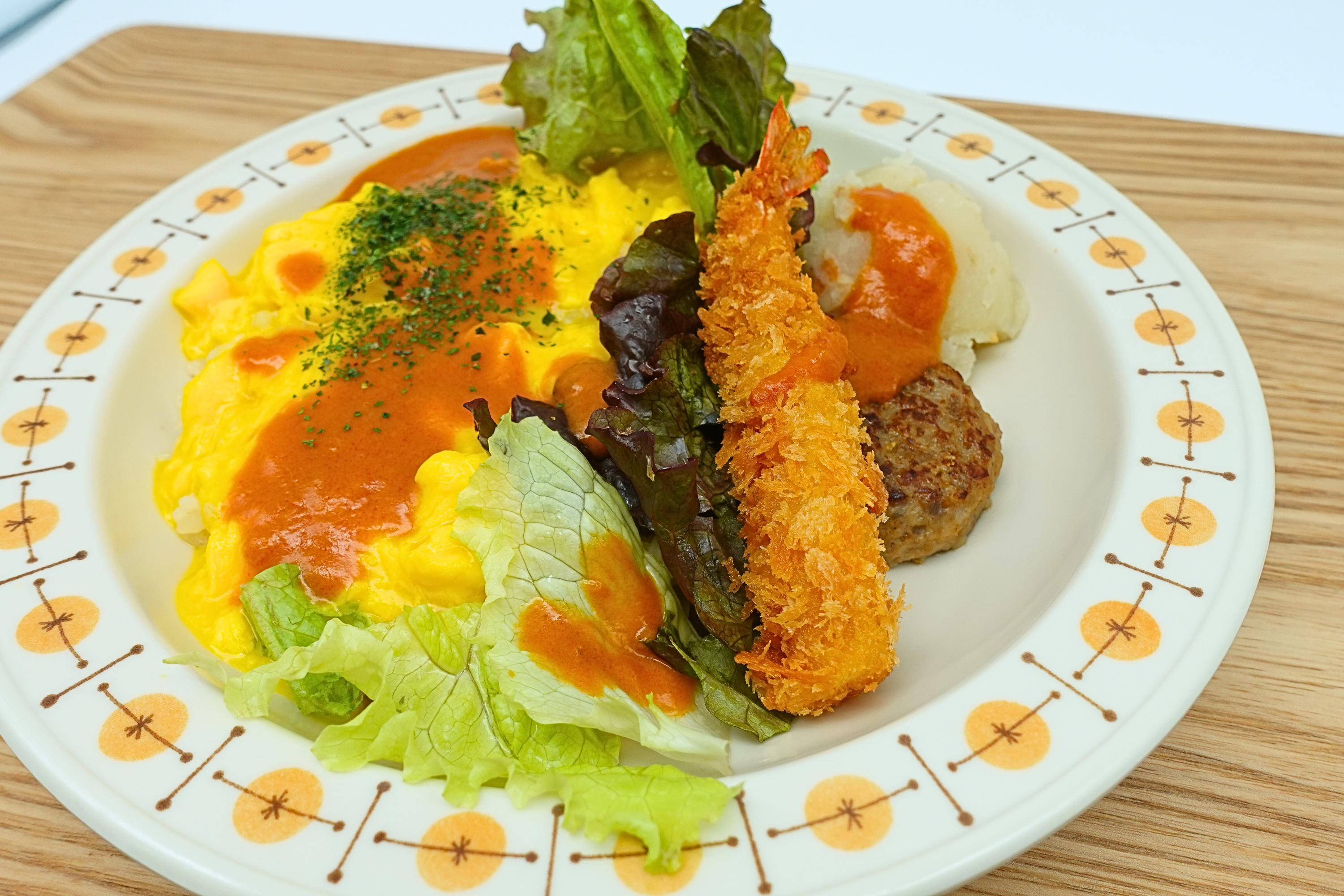 ミニハンバーグとエビフライもご飯が進む味で、大満足!少し小ぶりなプレートかなと思いきや、ご飯のボリュームが満点なのでお腹の具合もいい感じになりました🍤