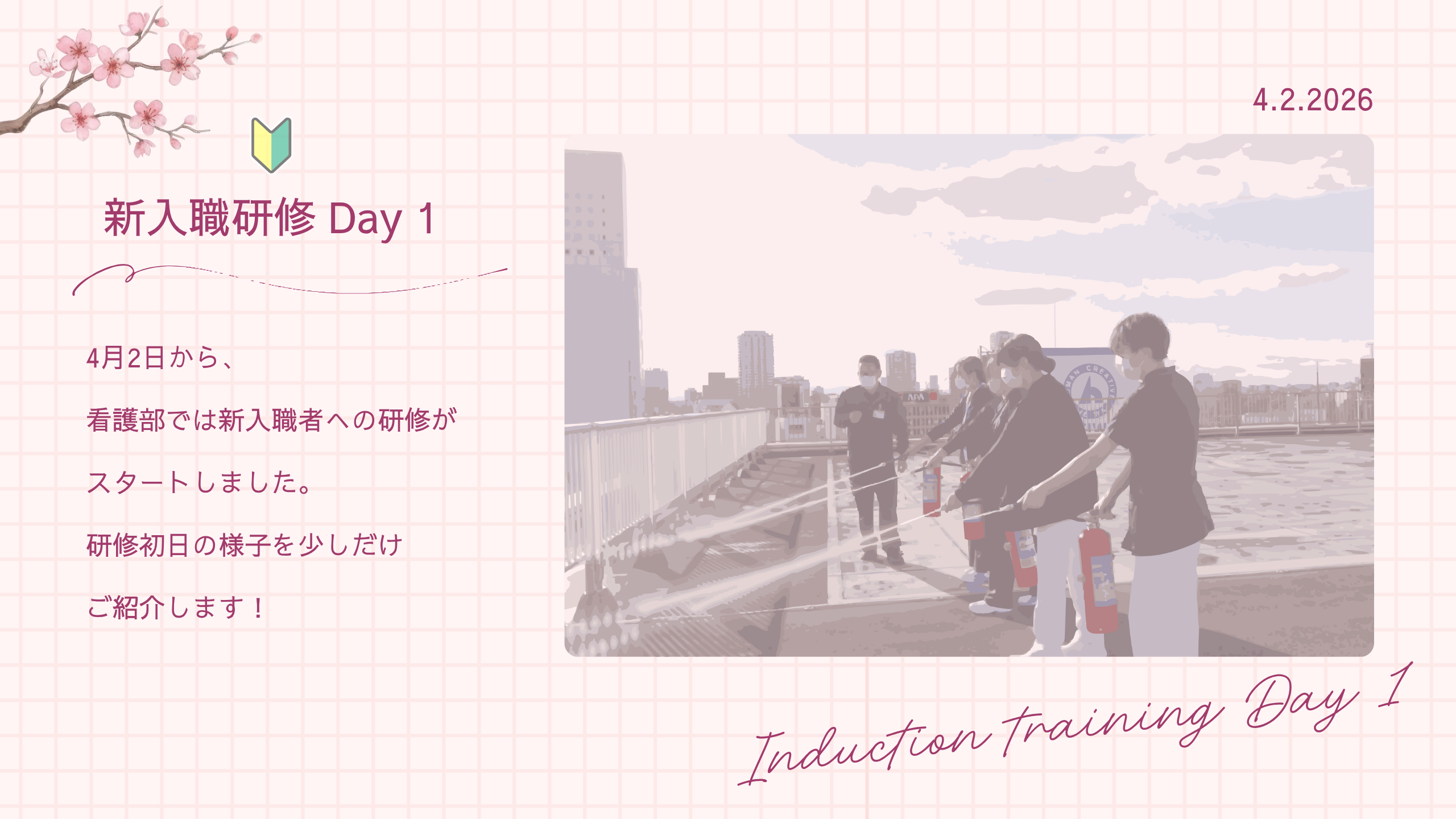 今日から始まる二週間の研修、新しい仲間と協力しながら頑張って乗り切りましょう!