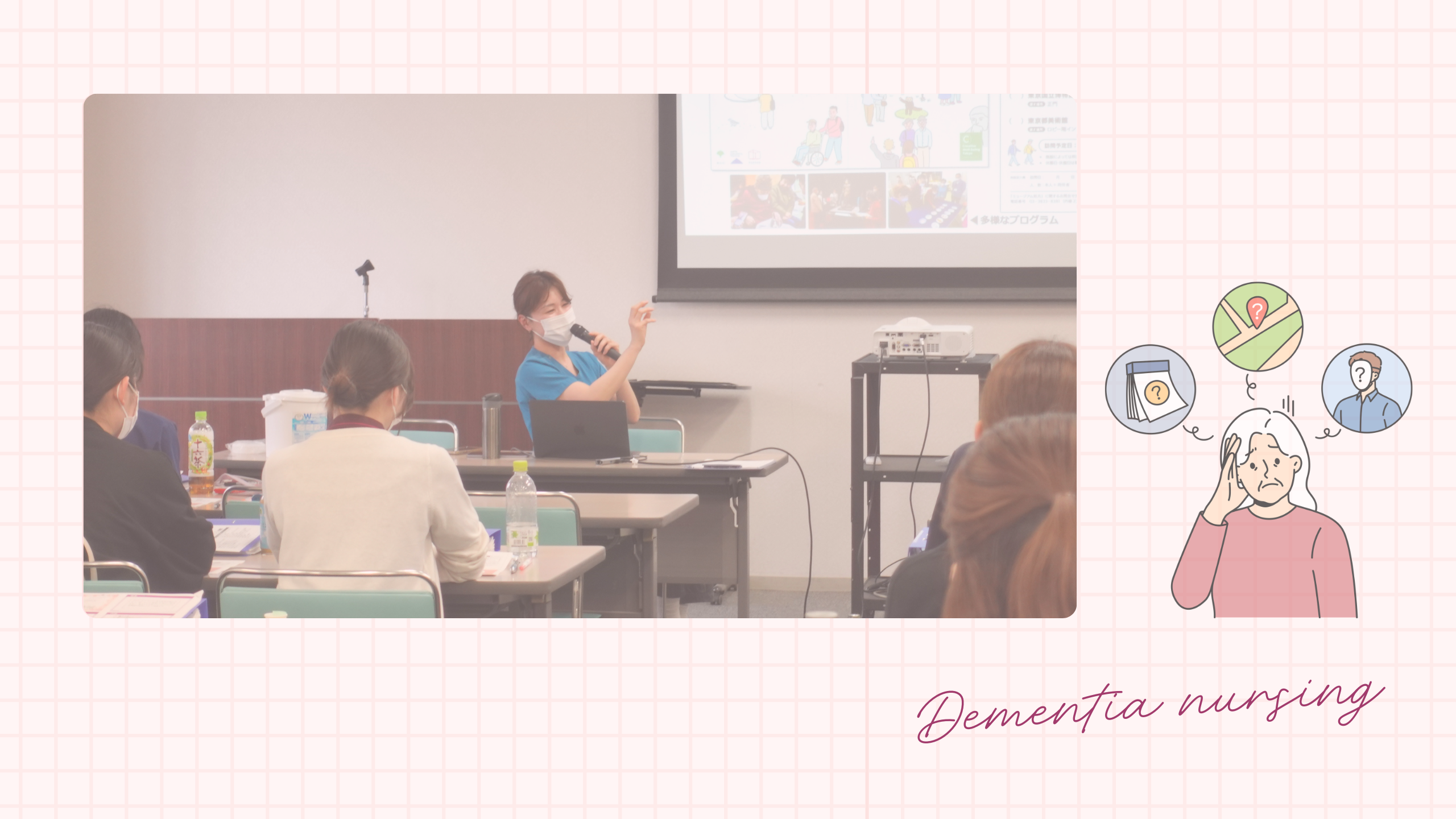 認知症は、さまざまな原因により脳に変化が生じ、認知機能が低下することで日常生活に支障をきたす状態を指します。研修では、認知症の基本的な理解に加え、その人らしさを支える看護のあり方について学びました。