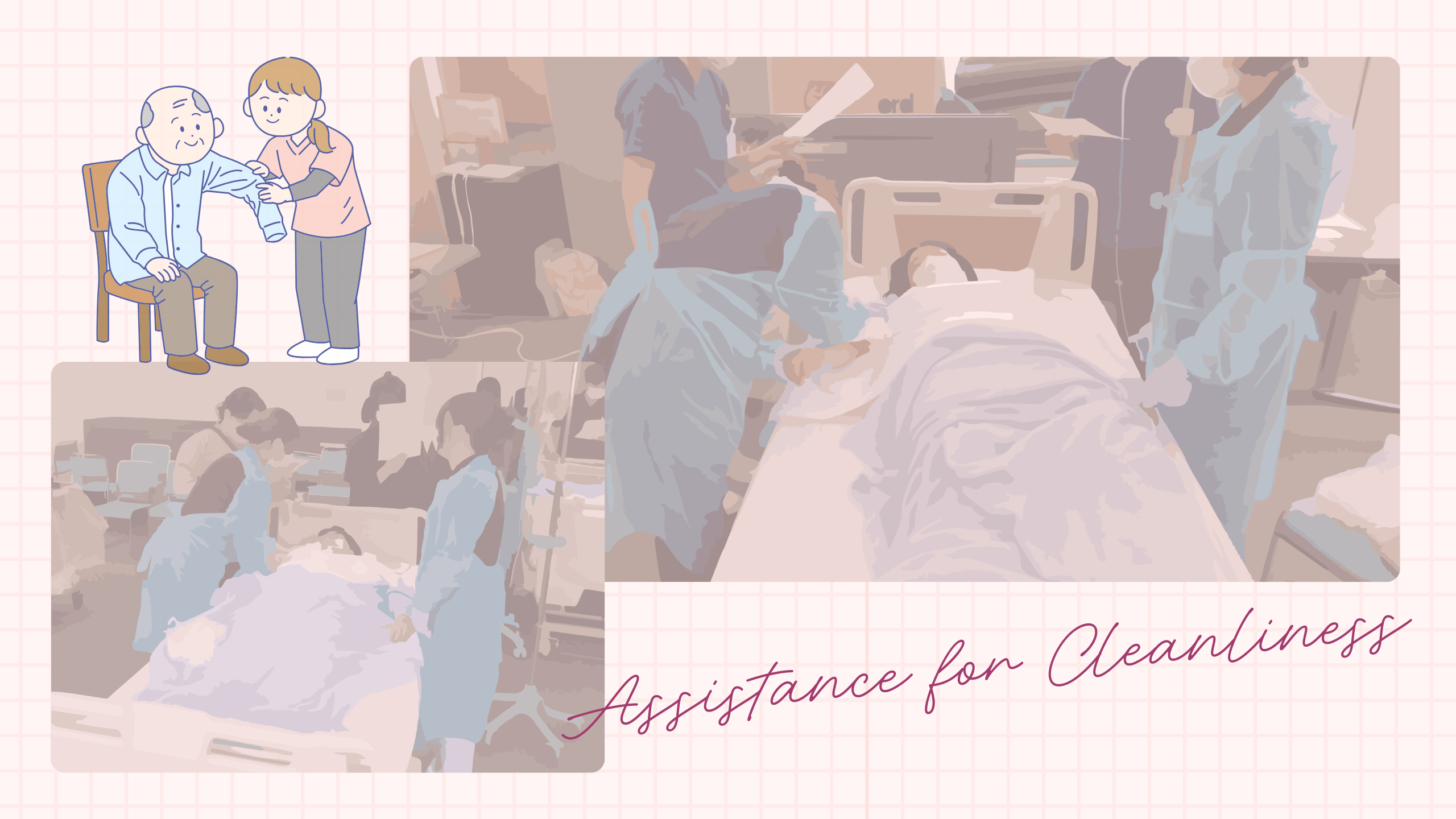清拭・更衣について、講義と実技を通して学びました。