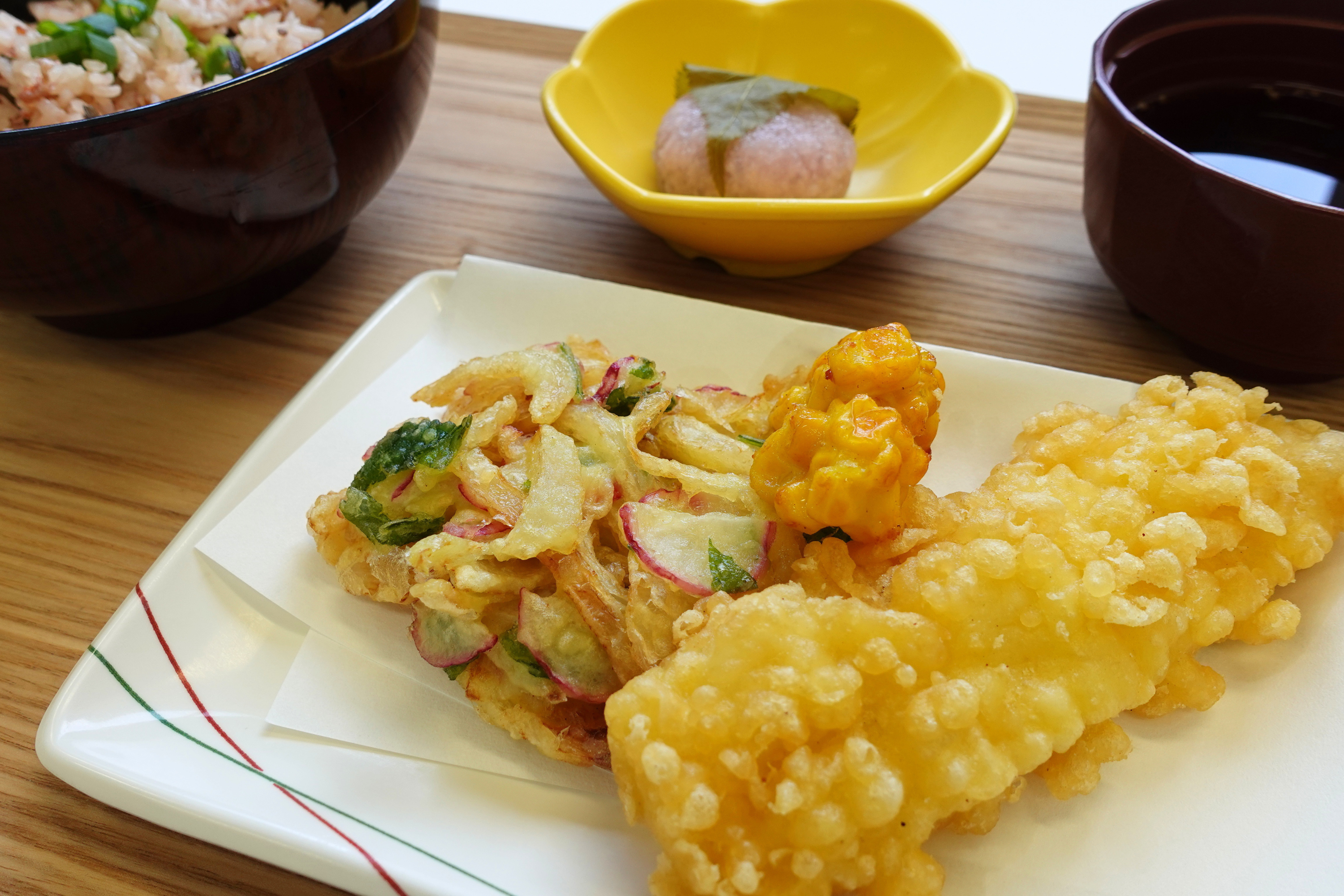 天ぷらは、とうもろこしの甘みが感じられ、かき揚げはサクサクとした食感と玉ねぎの旨みが楽しめました!天つゆに梅が入っていてさっぱりとした味わいだった点も嬉しい😆後半も飽きずに美味しくいただけました💕