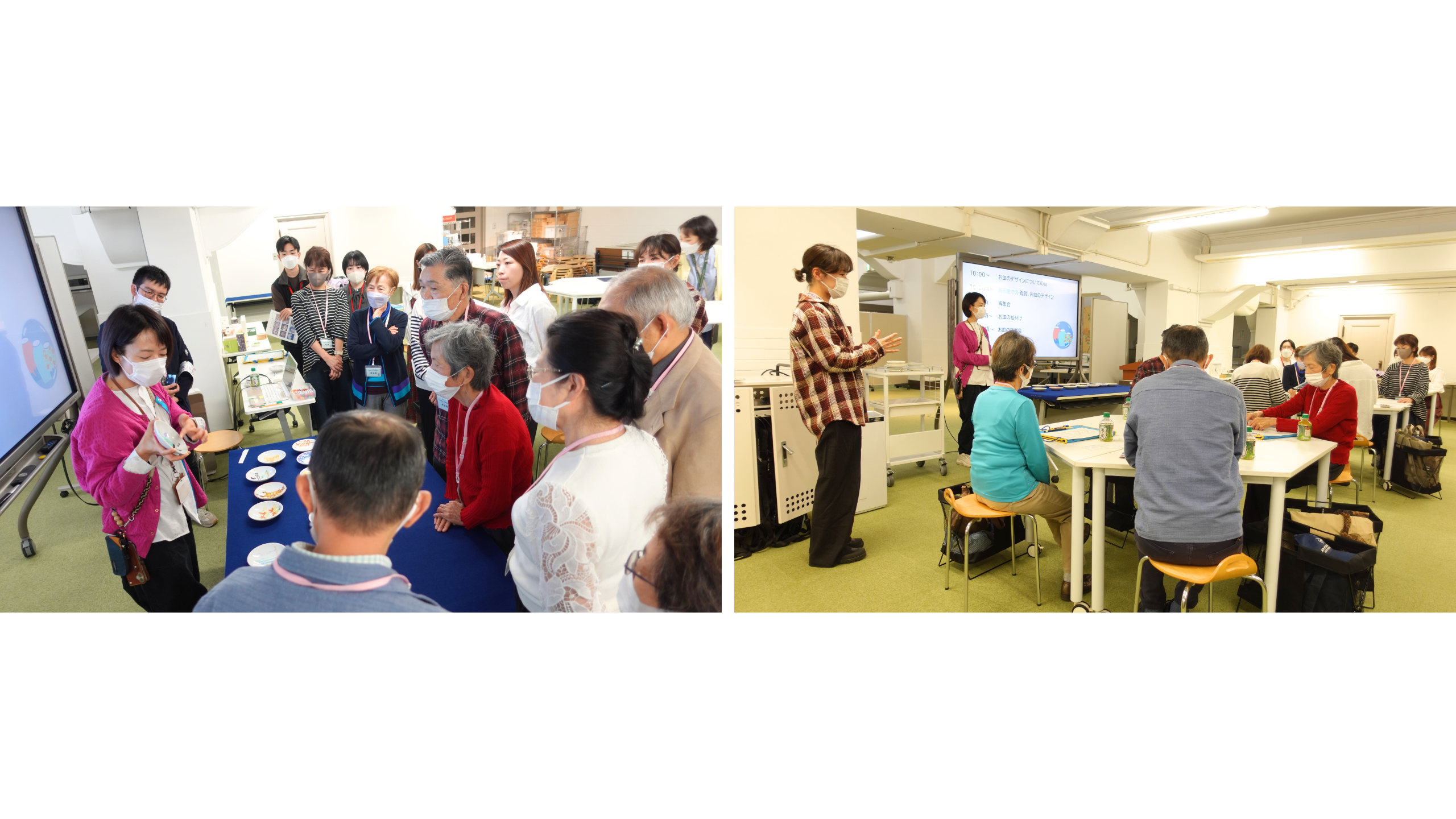 その後、お皿のデザインのヒントを探すため、ご自分のペースで展示作品を自由に鑑賞する時間が設けられました。当日の展示作品の中から特に惹かれた伝統的なモチーフや模様、色使いを真剣に選び出す様子がうかがえ、どの方も制作の意欲に満ちていらっしゃいました。