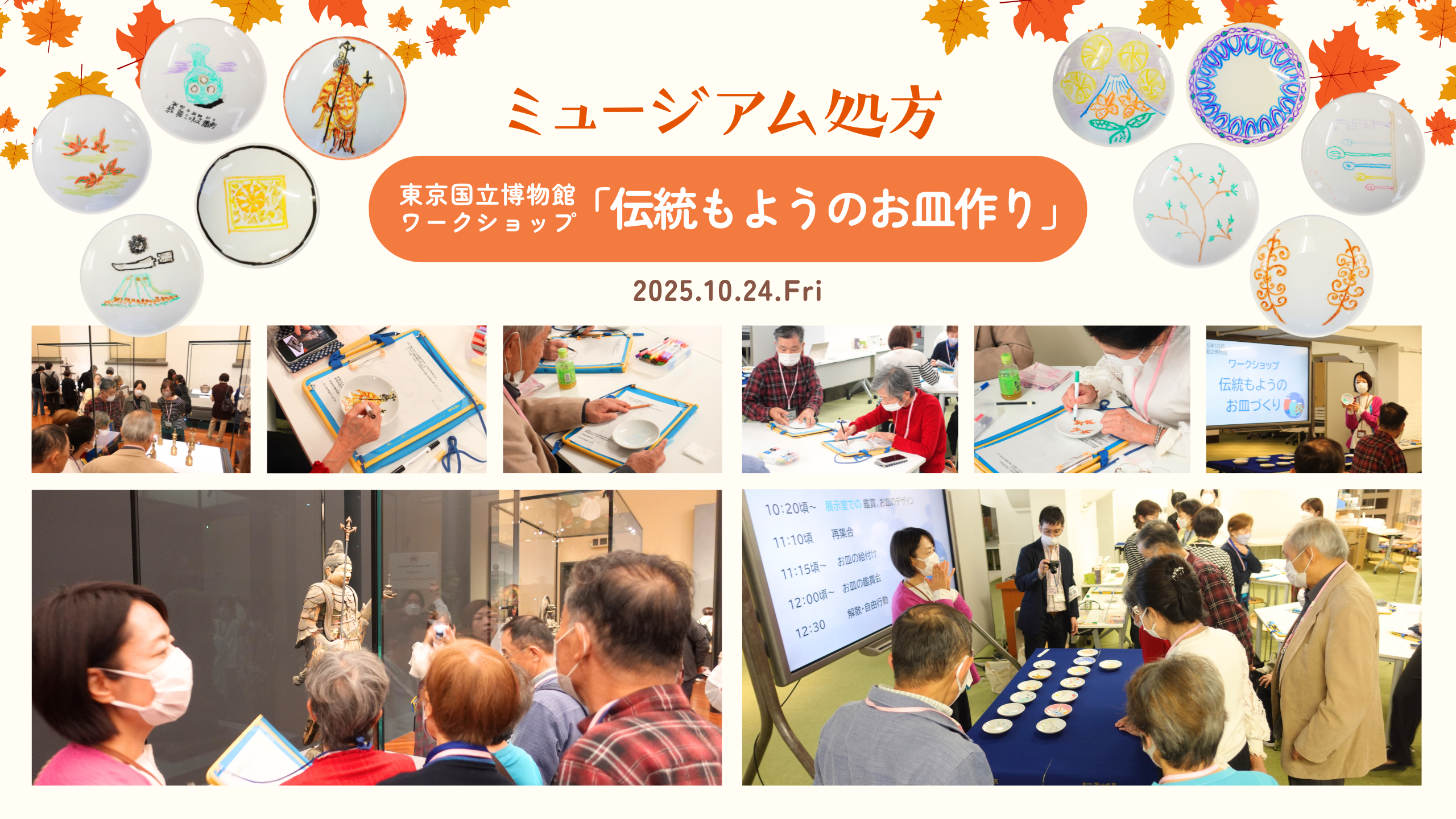 今回は、ミュージアム処方の受け入れ施設の一つである東京国立博物館で、処方を受けた方々とそのご家族を対象に、作品鑑賞とお皿作りのワークショップが実施されました。
