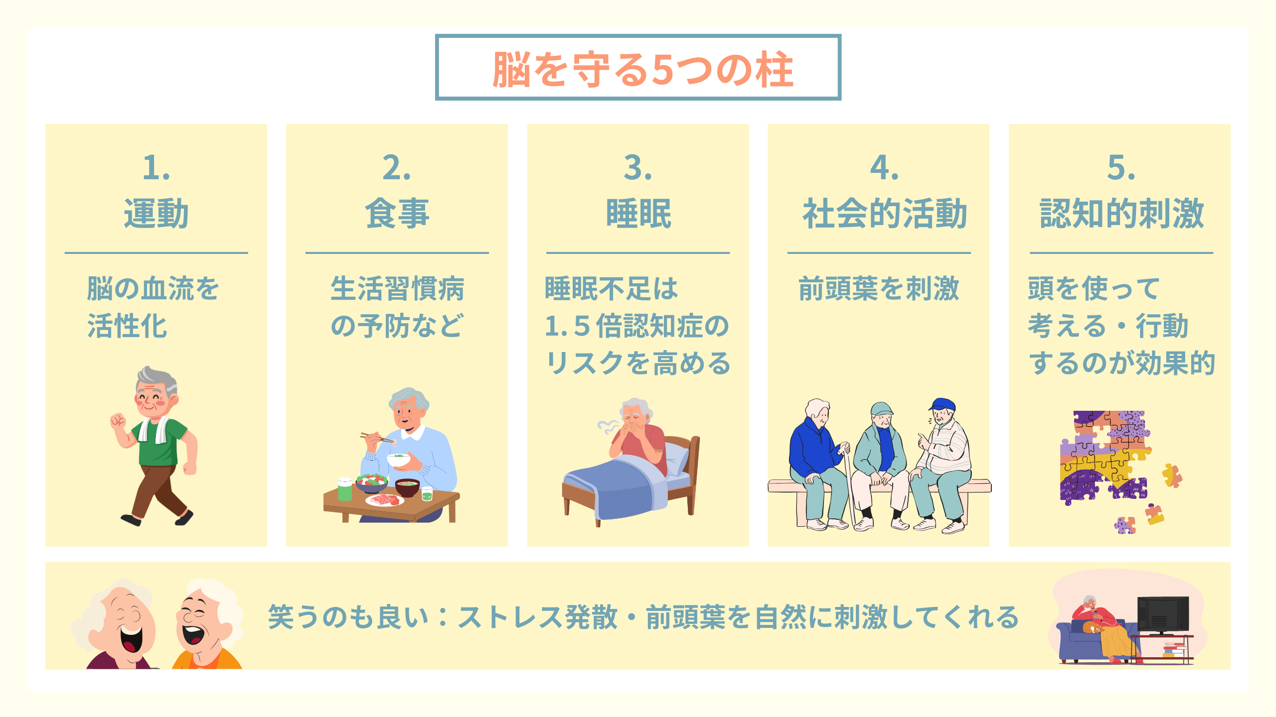 ここで言う「予防」とは、認知症を完全に防ぐことではなく、発症を遅らせたり、進行を穏やかにすることを意味します。