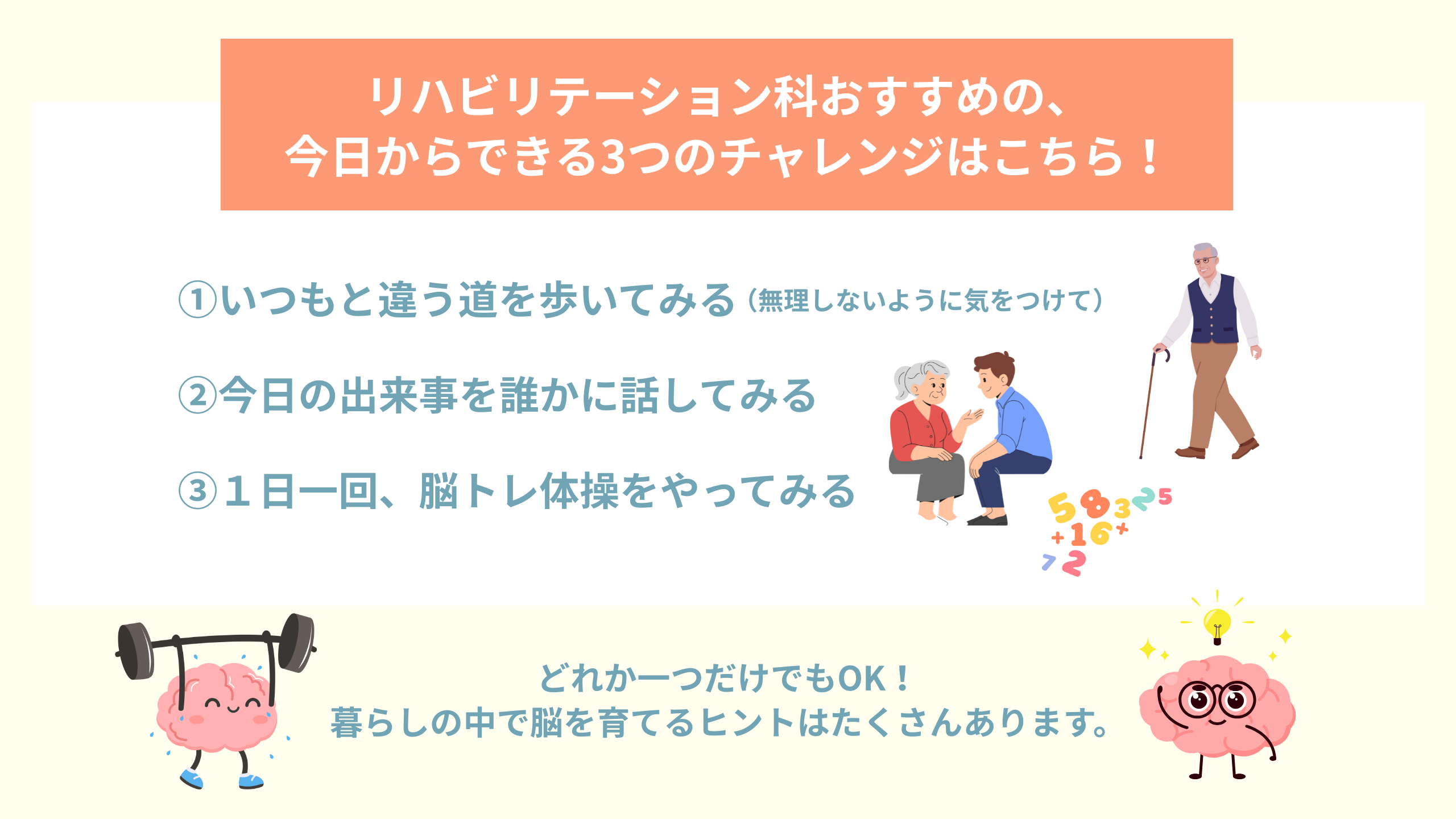 大切なのは、「ならないようにする」ことだけではなく、早期に気づき、進行を遅らせ、安心して暮らせる環境を整えることです。