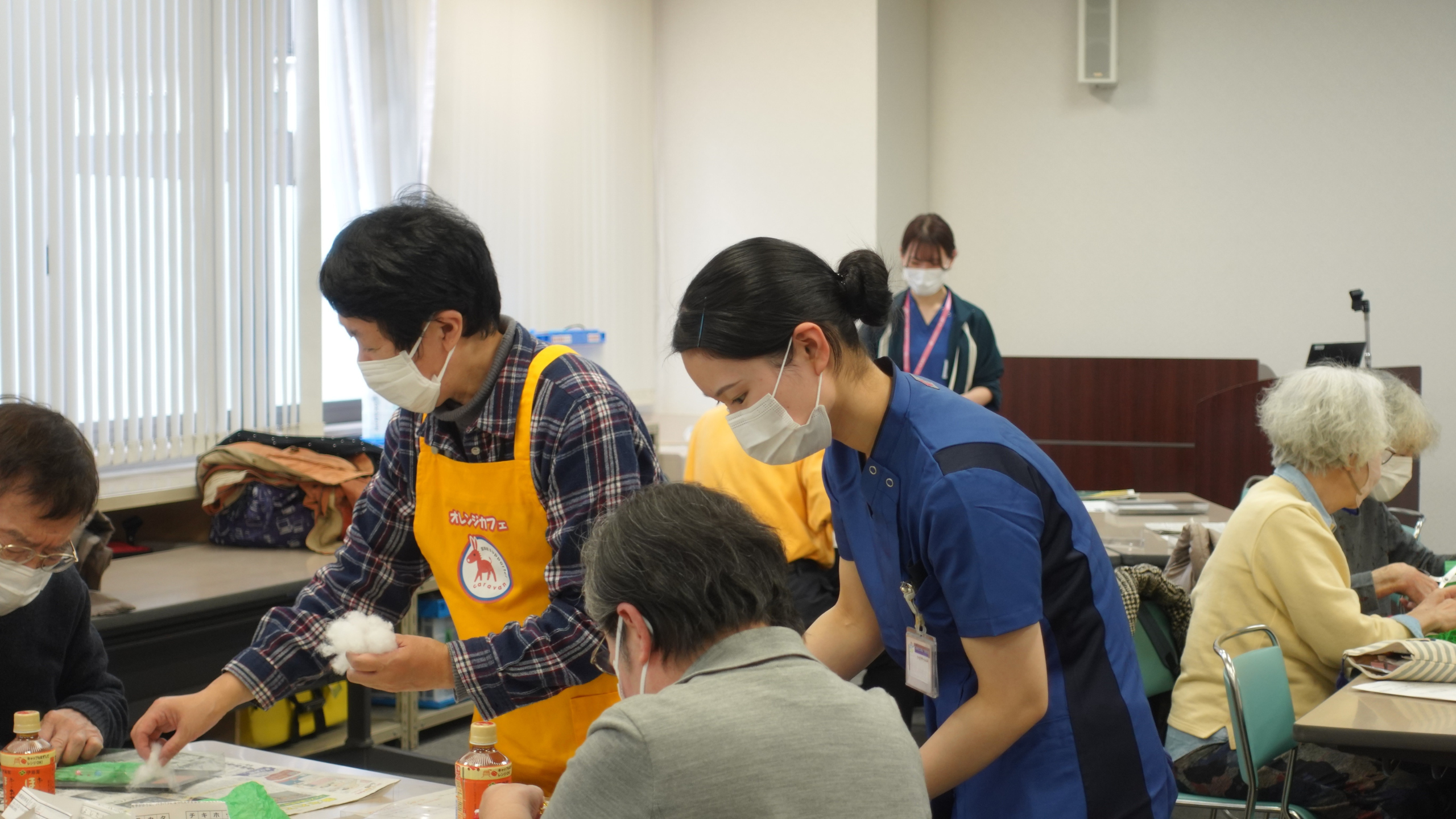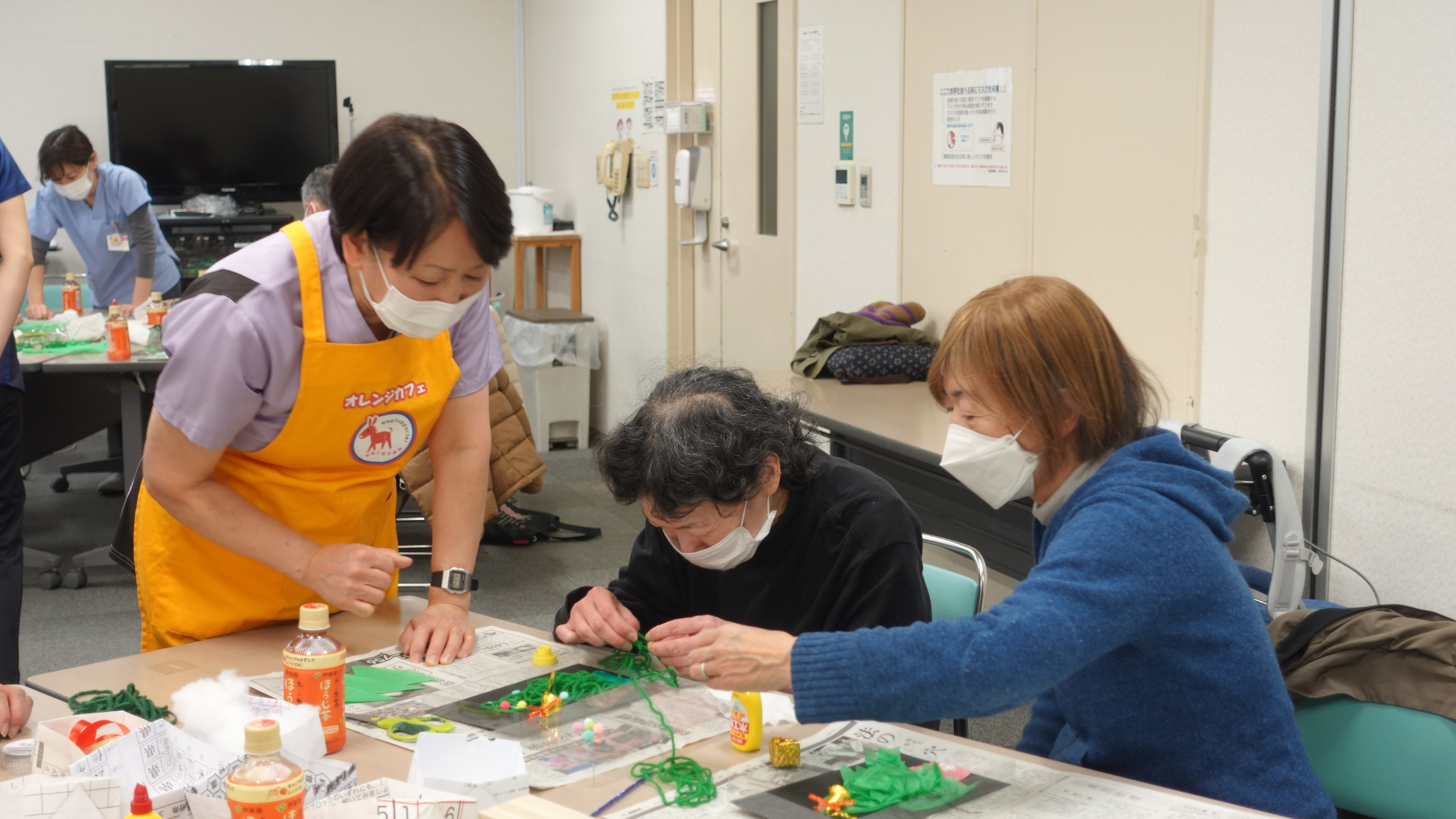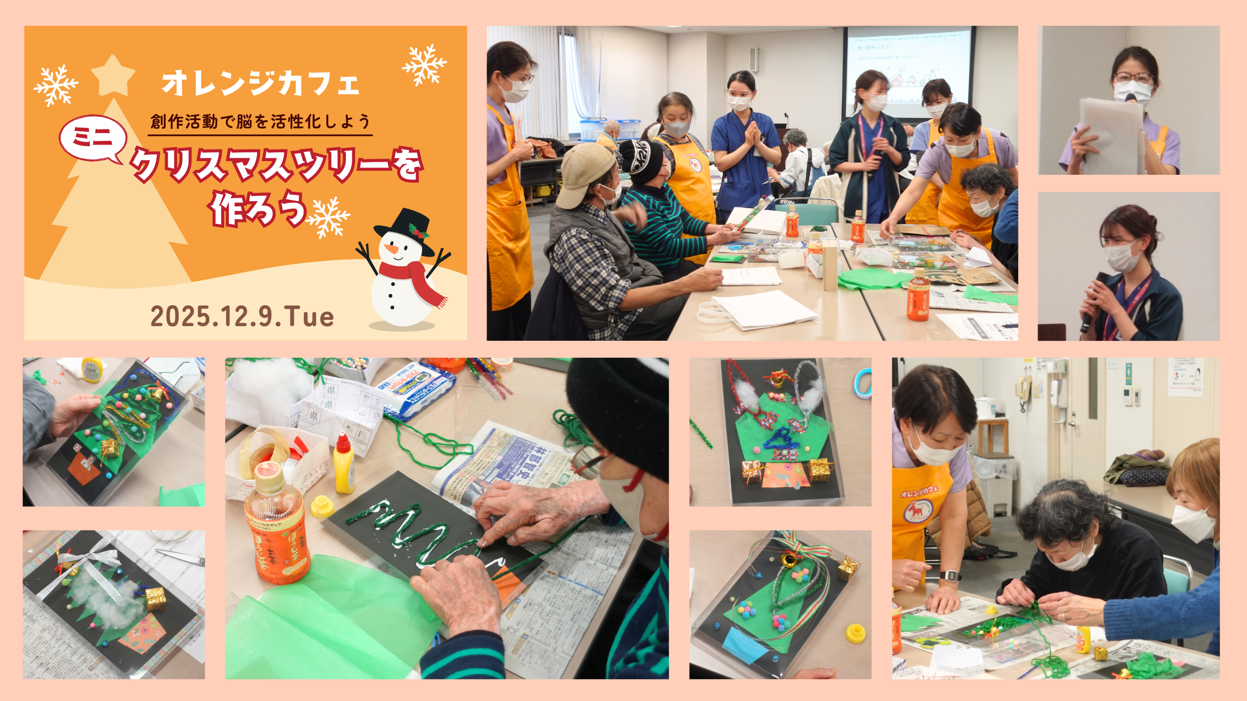 12月9日(火)に、柳橋分院リハビリテーション科の作業療法士によるワークショップスタイルのオレンジカフェ「創作活動で脳を活性化〜ミニクリスマスツリーを作ろう〜」を開催しました。