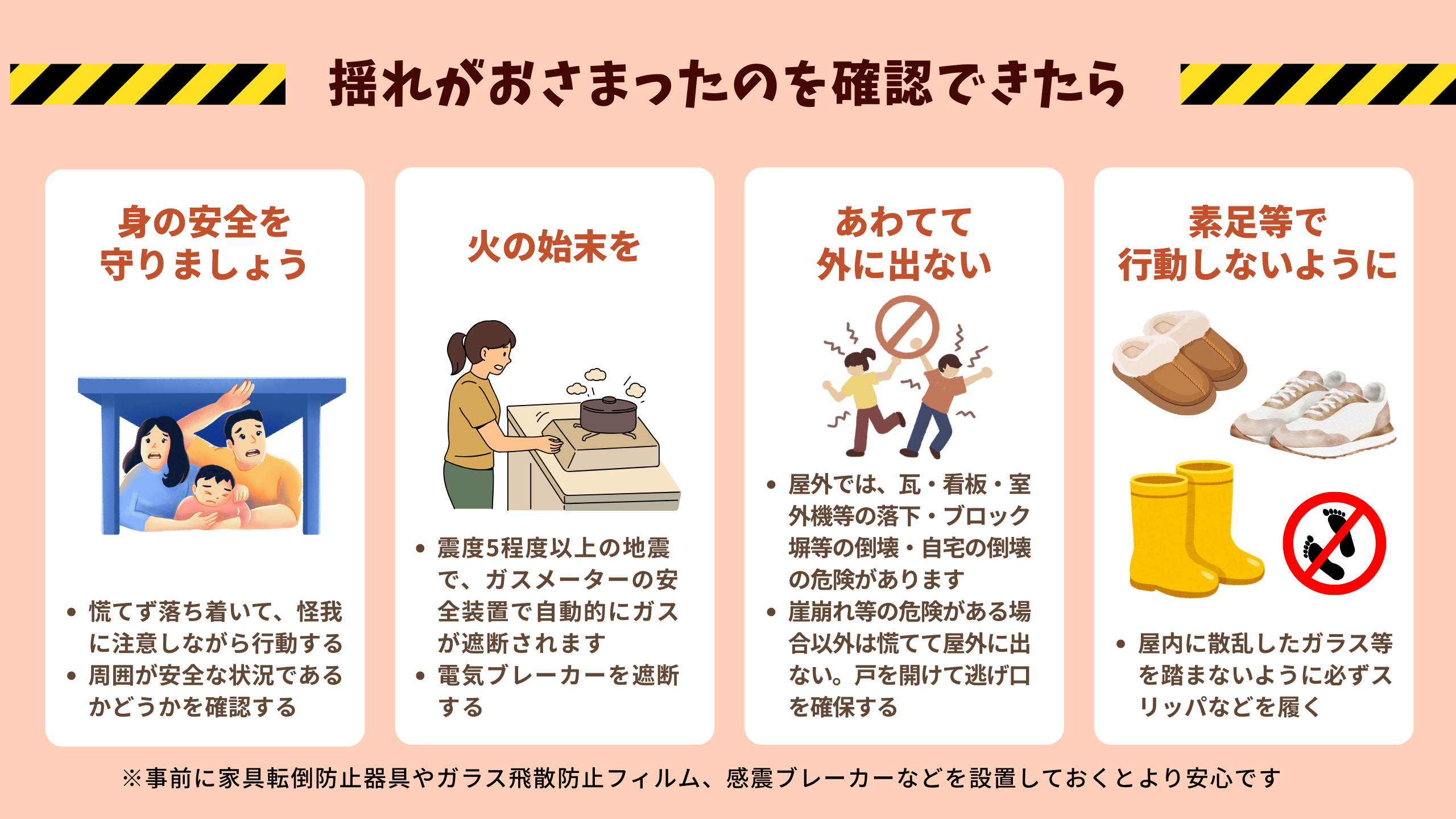 十分な安全が確認できたら、自宅に戻り、在宅避難となります。