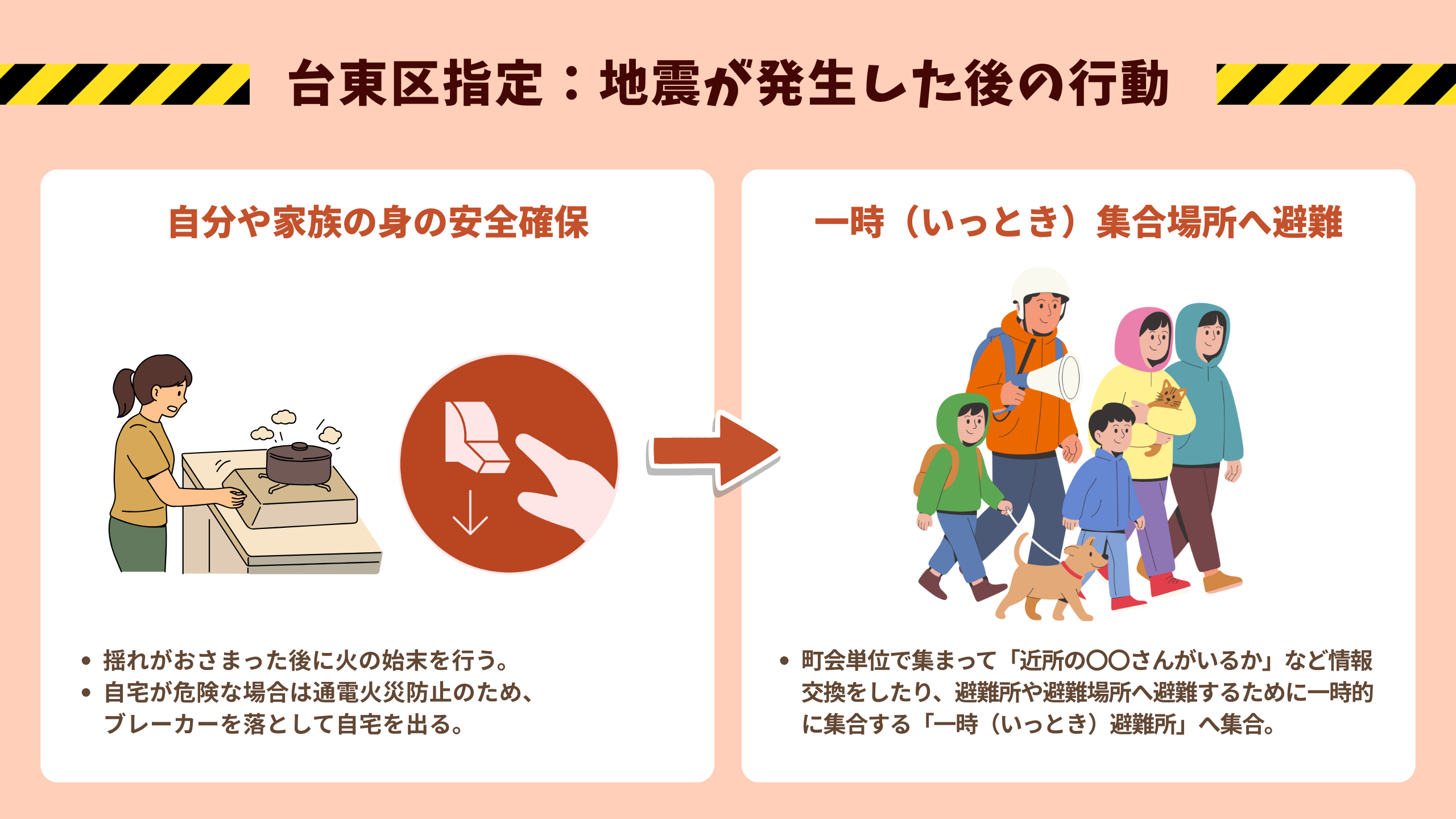 大地震が発生したら、台東区では、このような避難の順序が指定されています。