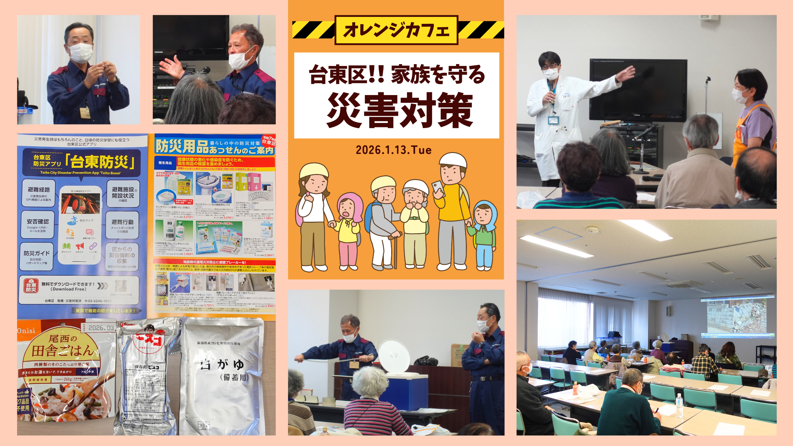 1月13日(火)に、台東区役所 危機・災害対策課の防災普及指導員のお二人をお招きし、オレンジカフェ「台東区!!家族を守る災害対策」が行われました。