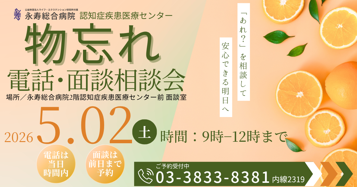 認知症疾患医療センターにて、物忘れ電話・面談相談を開催いたします。