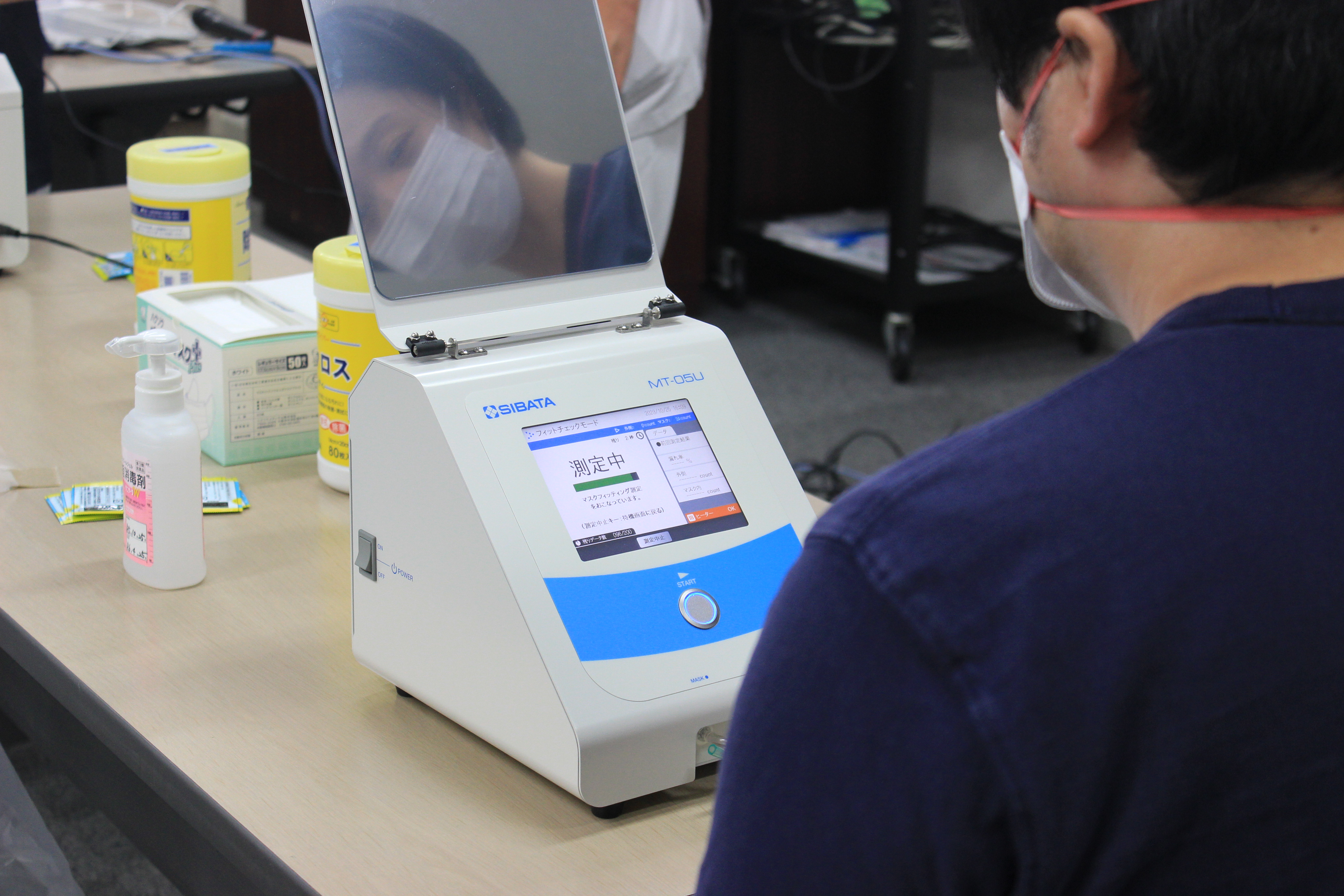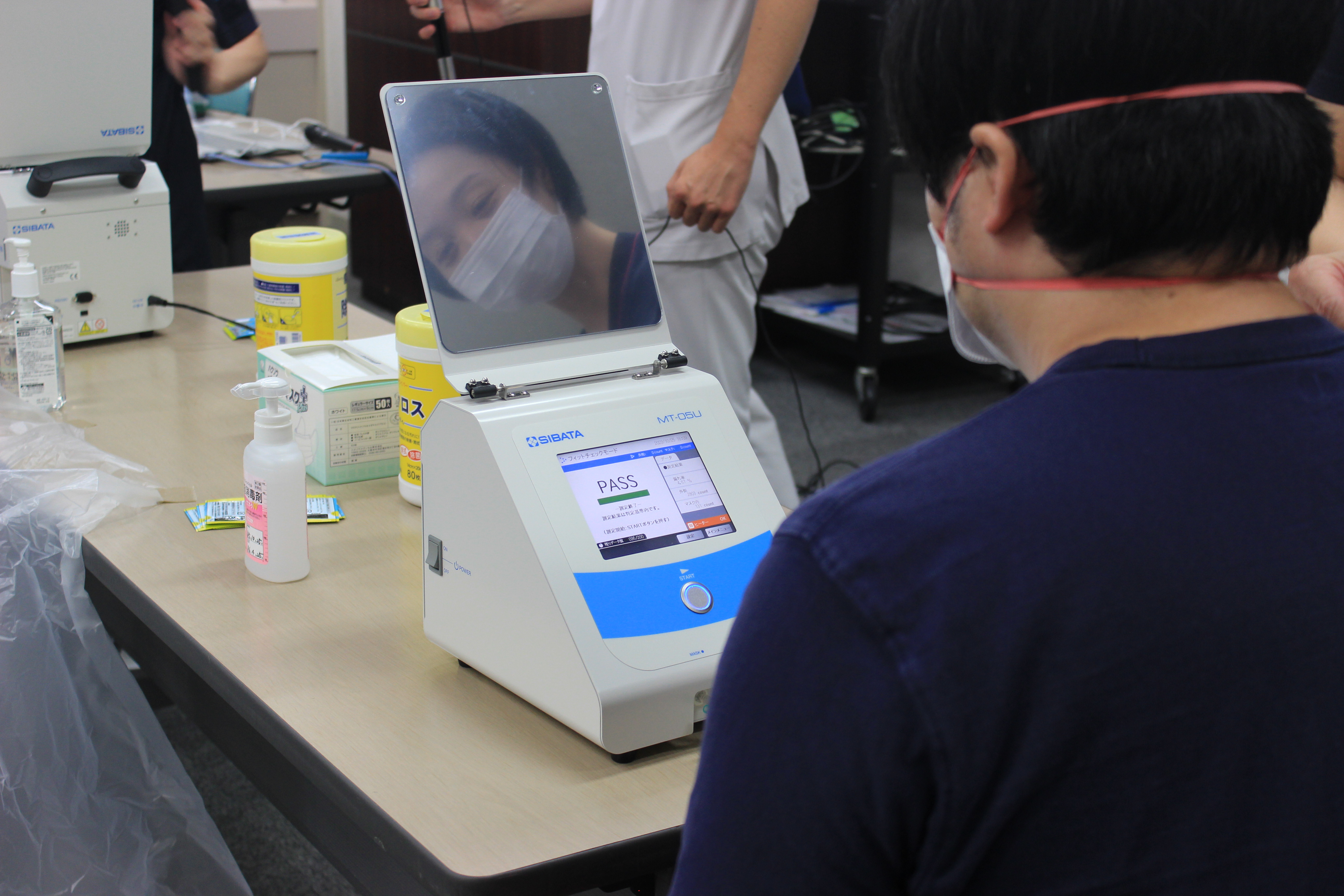 このテストはN95マスクが正しく着用されているかを専用の機械を使用して行います。
