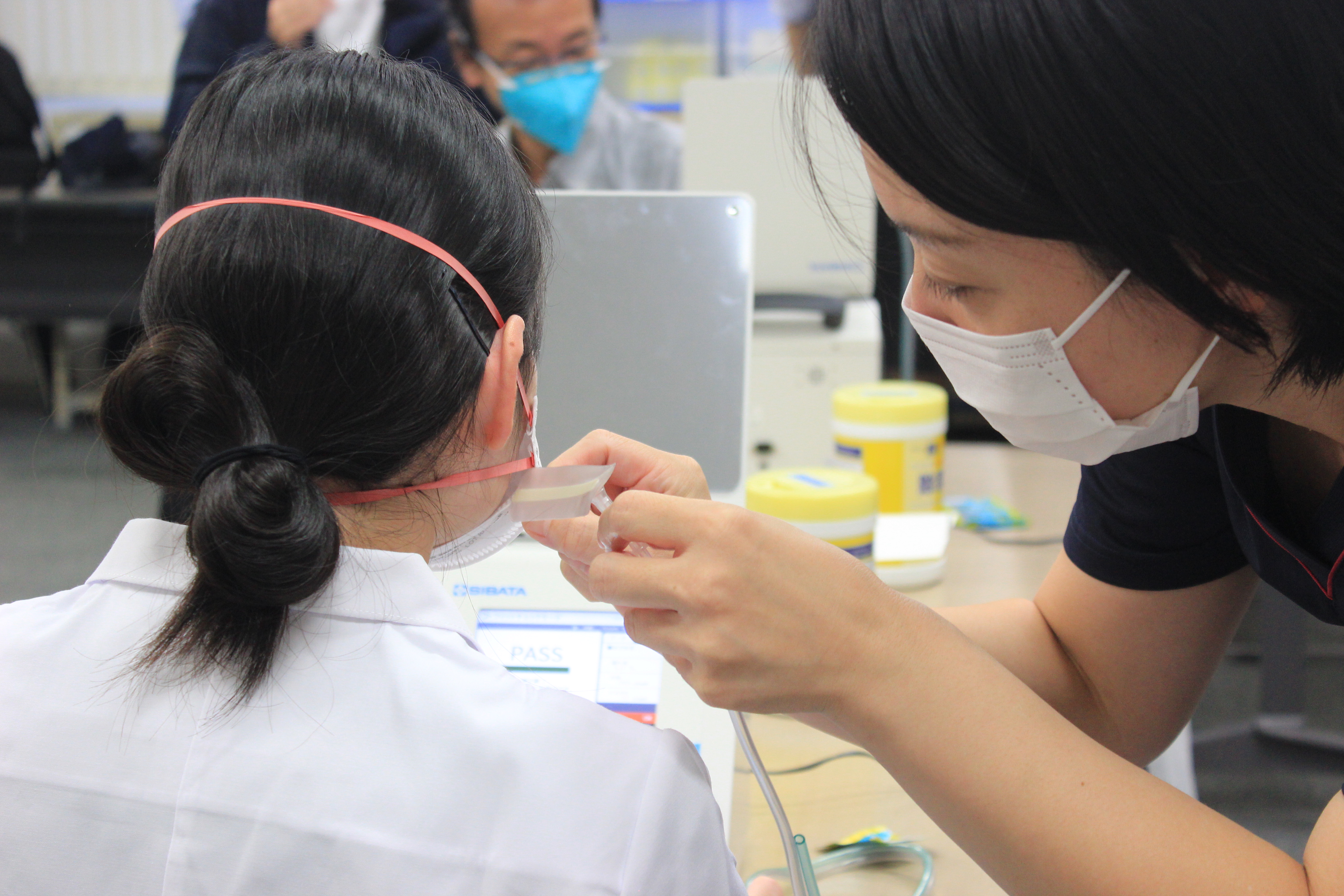 最後に、PPEにも含まれているN95マスクのフィッティングテストを行いました。